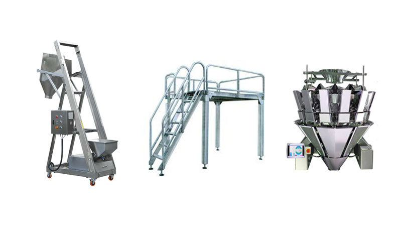 2.使用范圍:牛肉絲、金槍魚、小魚仔、豆干、海帶絲等休閑食品的包裝。這套設備是由真空包裝機+組合秤+工作平臺+提升機組合而成。
