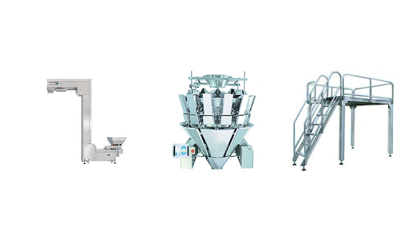 2.使用范圍:花生米、綠豆、瓜子、丸子等顆粒狀物料的包裝。這套設(shè)備是由多頭組合秤+工作平臺+給袋式真空包裝機組合而成。