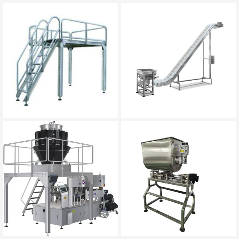 大蒜頭、牛肉丸、肉丸、酸菜等顆粒狀物料的真空包裝。這套設(shè)備是由:真空包裝機+工作平臺+提升機+液體灌裝機+多頭組合秤組合而成。